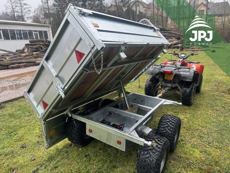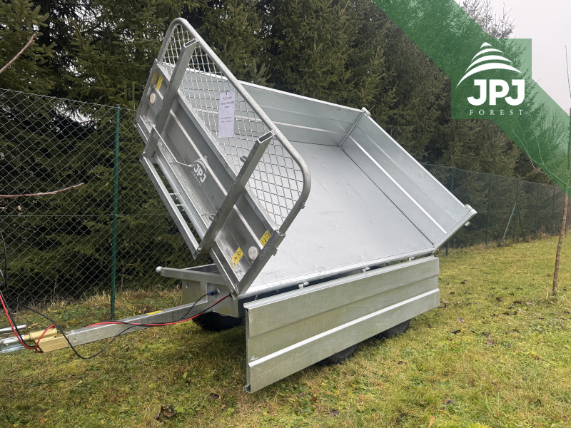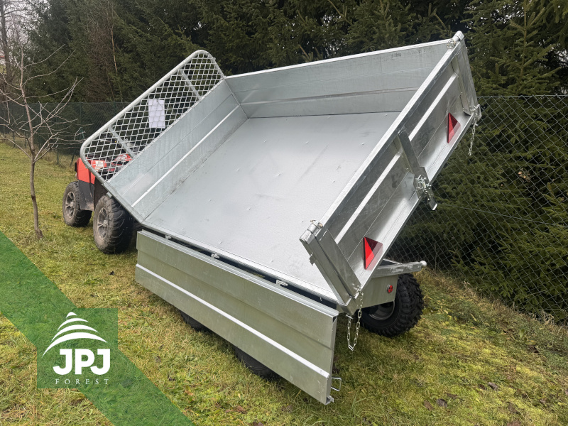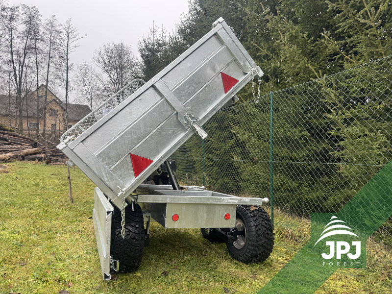 This professional three-way electro-hydraulic tipper is designed for maximum performance in difficult terrain. With a load capacity of 1550 kg, it can easily handle the transport of wood, gravel, soil and building materials. Tipping is carried out using a powerful electro-hydraulic system, which allows for quick and convenient emptying of the body to three sides – to the rear and to both sides.